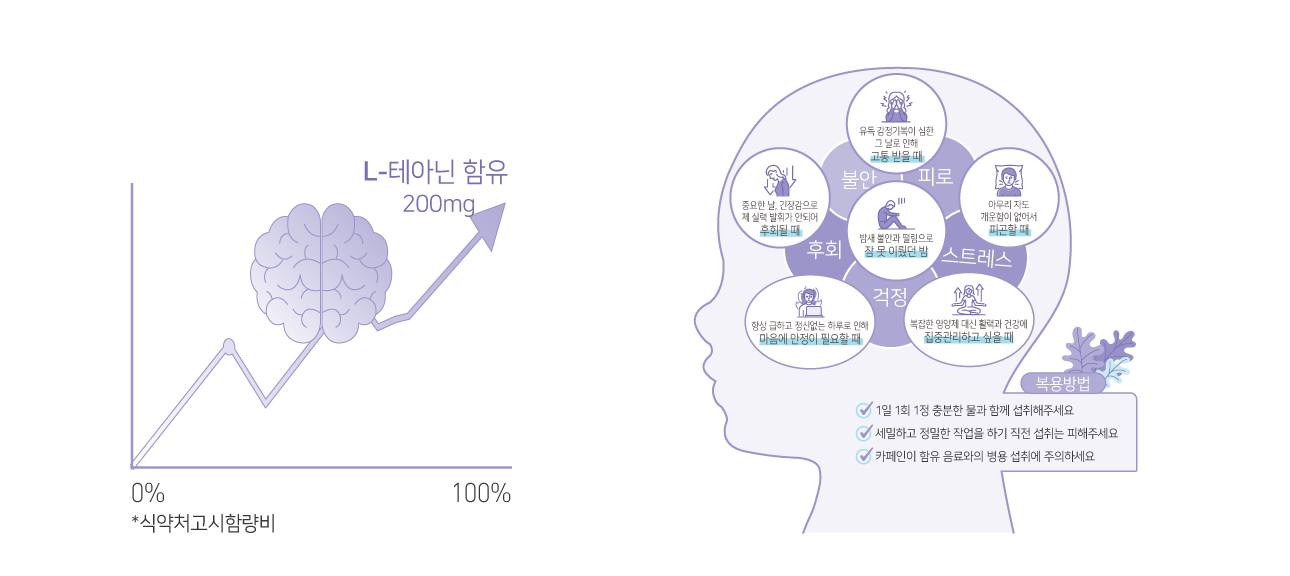 1. 테아닌 스트레스로 인한 긴장감을 완화시킬 때 L-테아닌 200mg